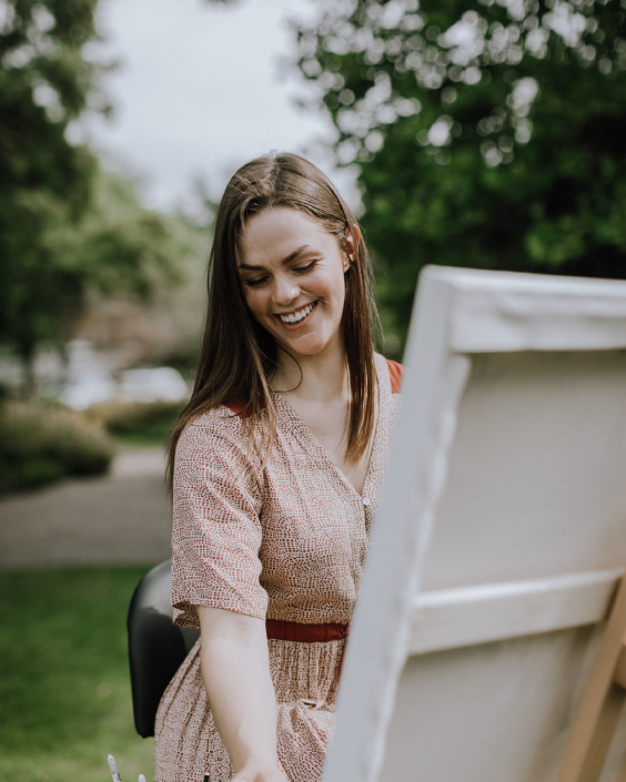 absolute pleasure to work with. Her painting of my daughter and new son-in-law is beautiful. The guests at the wedding were amazed watching her work. I highly