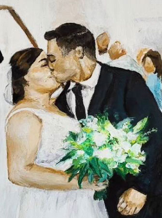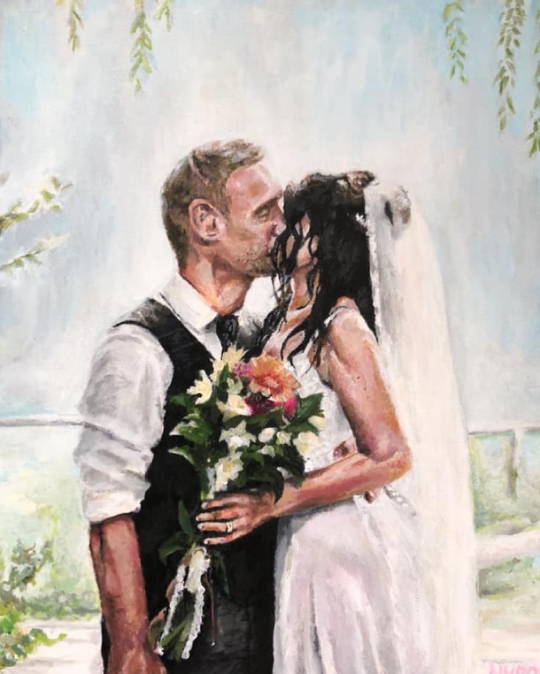 absolute pleasure to work with. Her painting of my daughter and new son-in-law is beautiful. The guests at the wedding were amazed watching her work. I highly